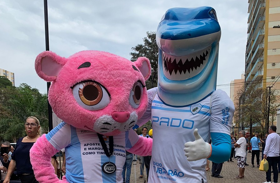 Mascotes da 98.9 FM e do LEC fazem ação no Calçadão de Londrina