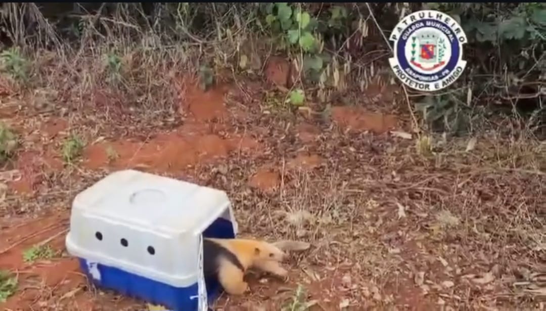 Guarda Municipal de Arapongas resgata tamanduá-mirim encontrado em empresa