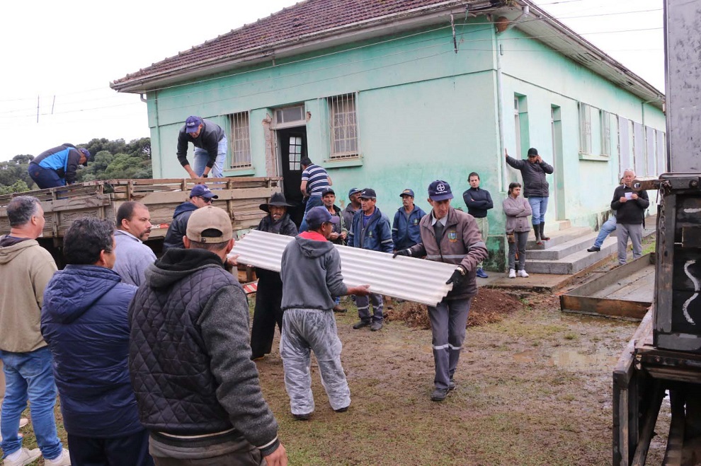Defesa Civil distribui telhas a famílias após granizo atingir Castro