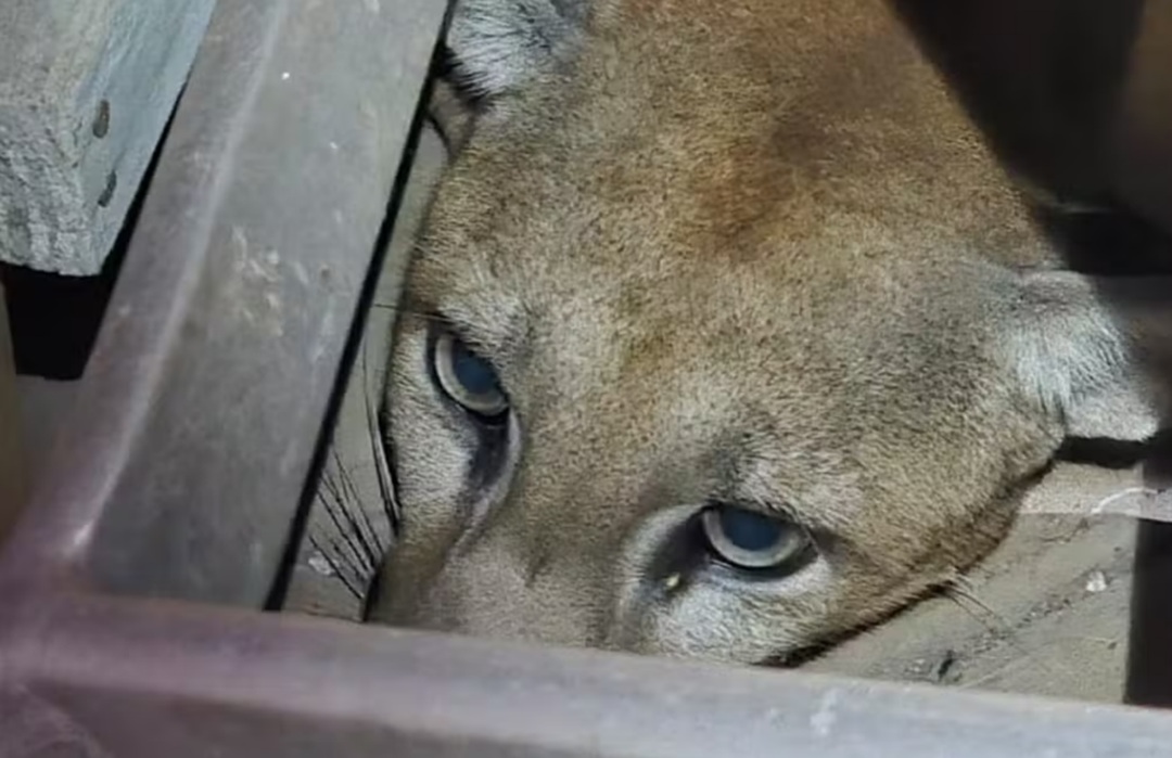 Onça-parda é resgatada em depósito de posto de combustíveis no centro de Faxinal