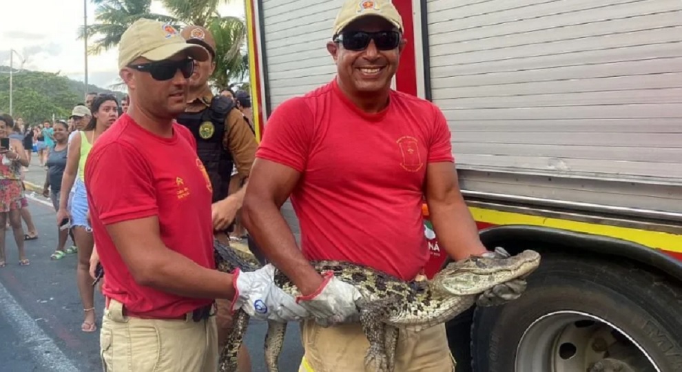 Jacaré é resgatado no mar por bombeiros em Guaratuba
