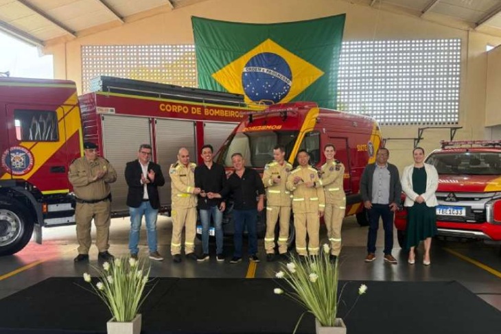 Corpo de Bombeiros de Cambé recebe três novas viaturas e passa por troca de comando