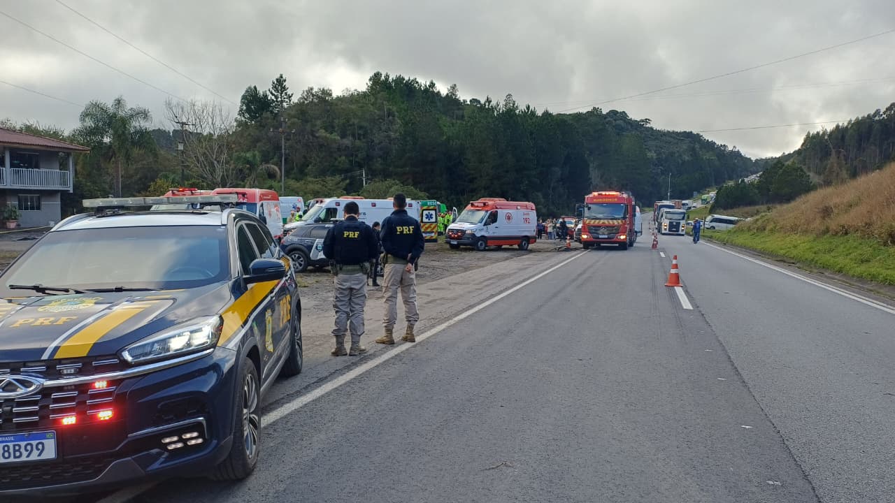 Grave acidente entre ônibus e caminhões deixa dois mortos e seis feridos na BR-116 em Campina Grande do Sul