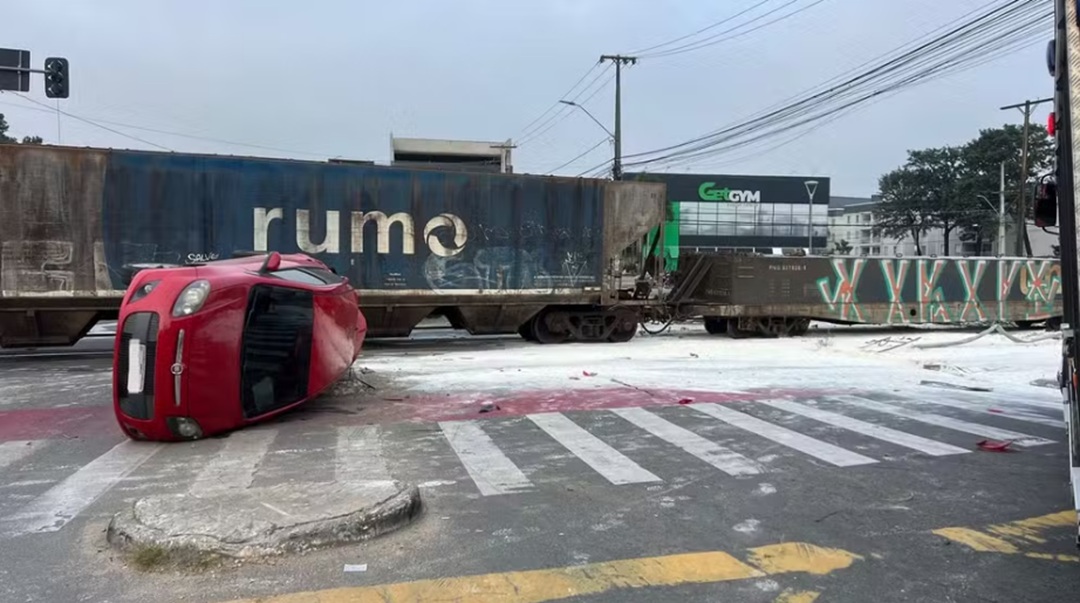Acidente entre trem, caminhão, moto e carros deixa um morto e um ferido no Paraná