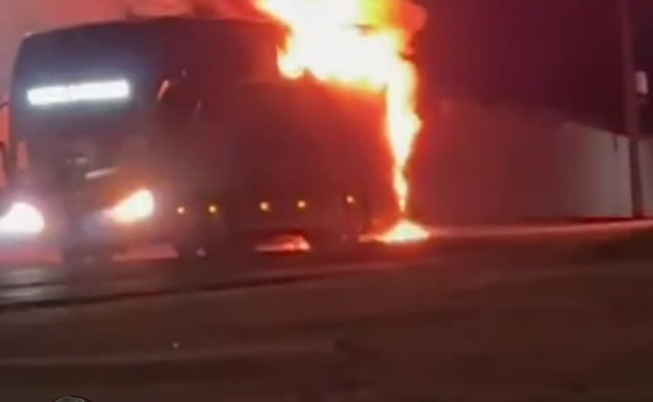 Ônibus pega fogo na BR-369 e passageiros deixam veículo às pressas em Cambará