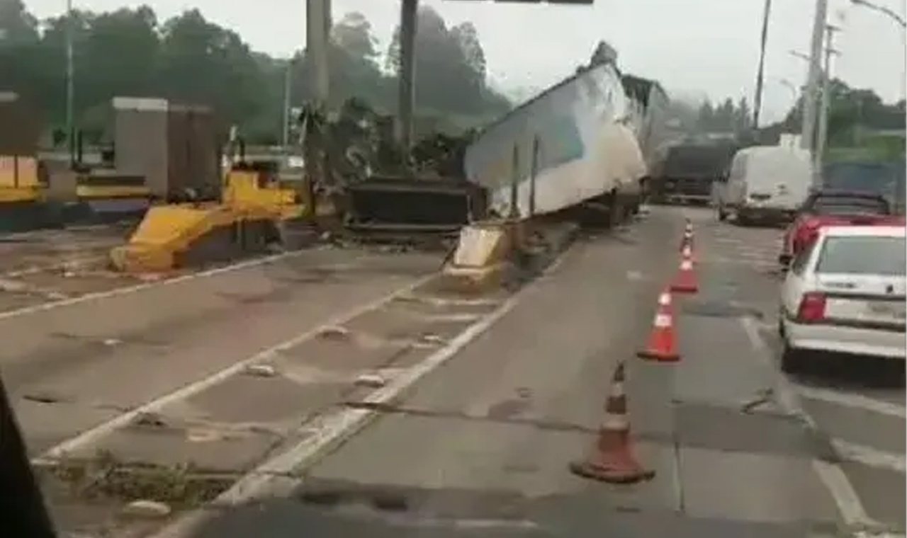 Caminhão bate em praça de pedágio desativada na rodovia BR-369 em Arapongas