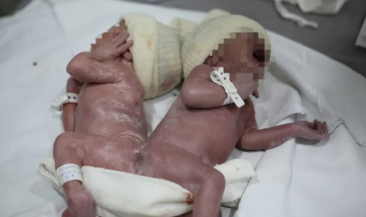 Gêmeos siameses nascem ‘colados’ por osso da coluna no Paraná