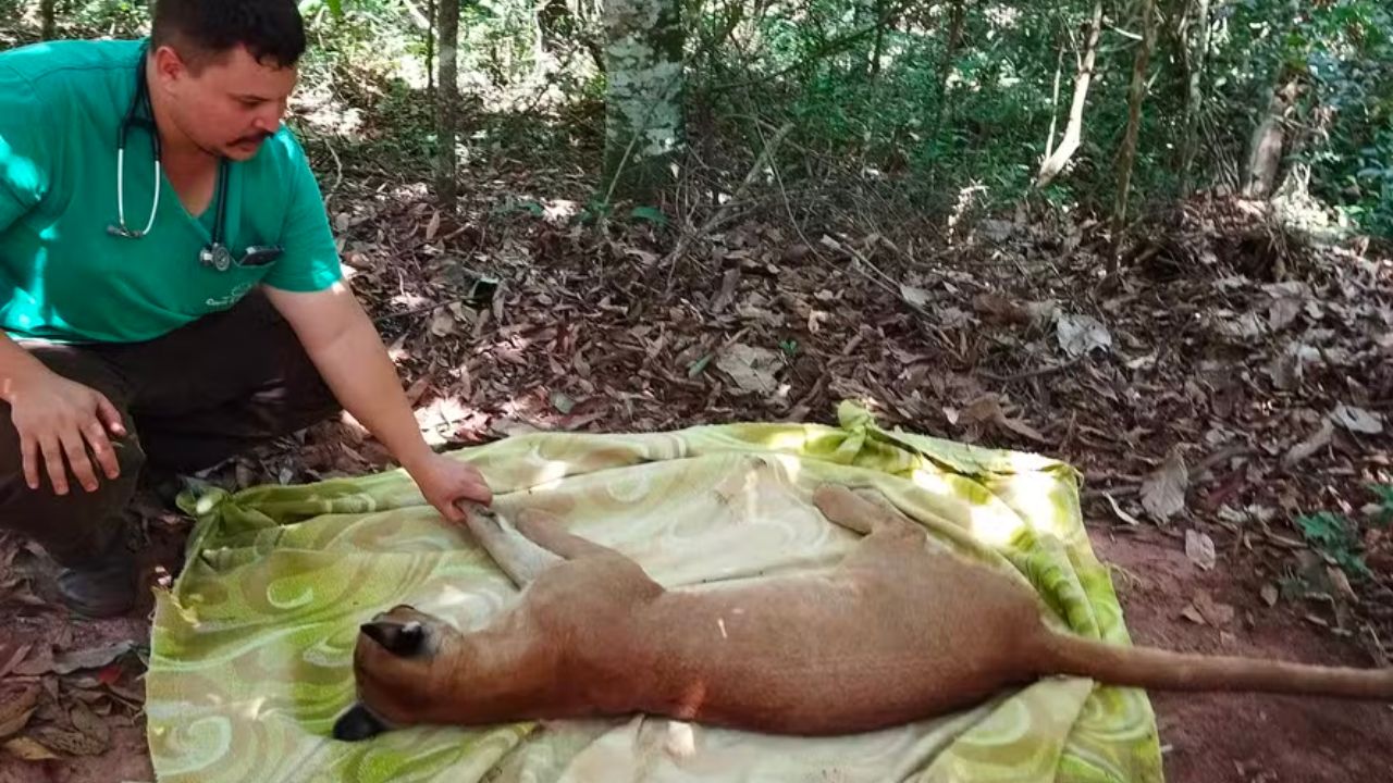 Onça de 45 quilos é encontrada no quintal de uma casa no Noroeste do Paraná