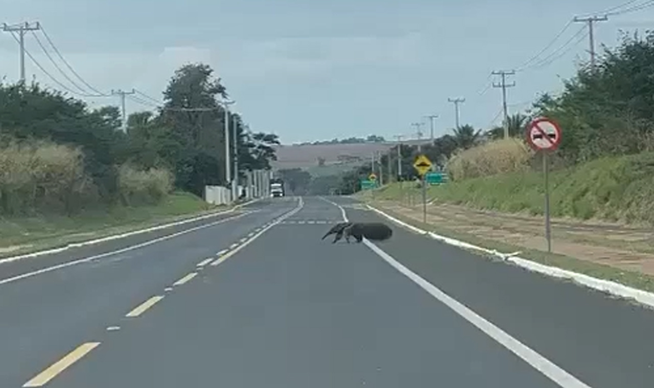 Tamanduá-bandeira é flagrado ‘desfilando’ por rodovia no noroeste do PR
