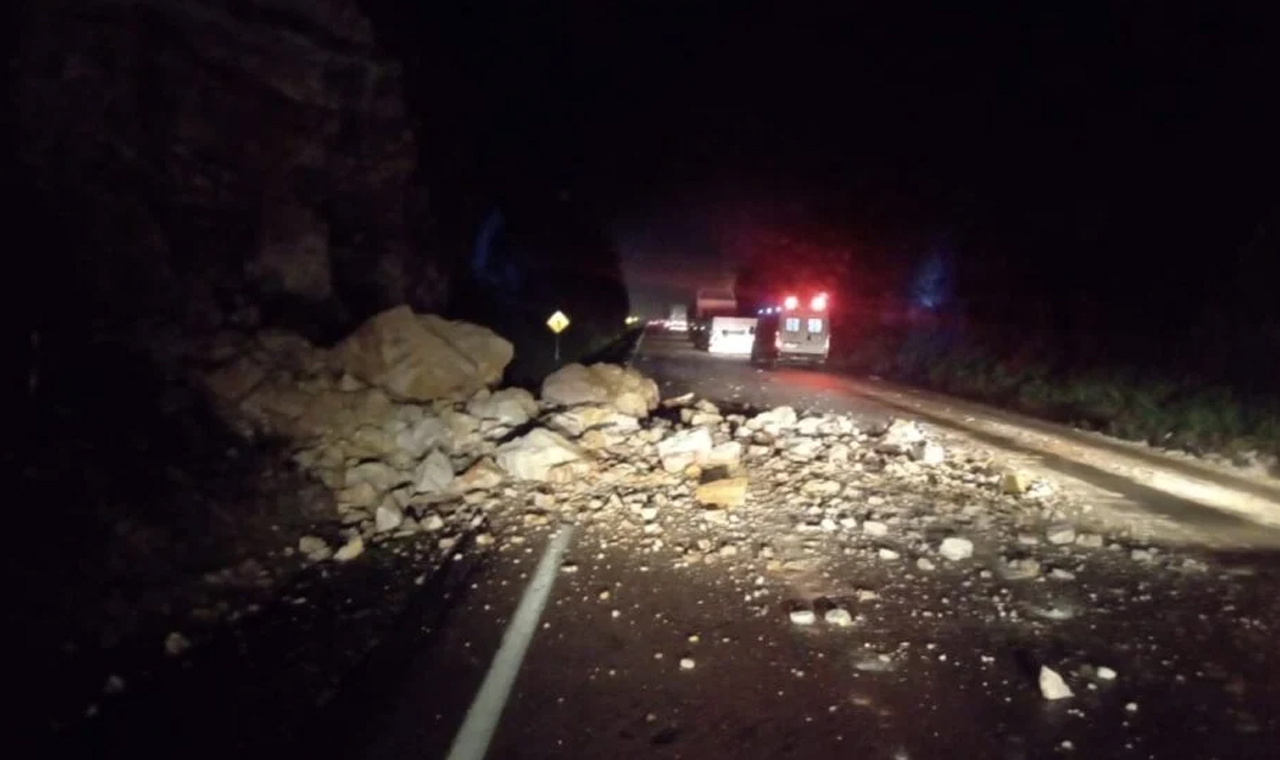 Chuva causa desmoronamento de barranco na BR-277