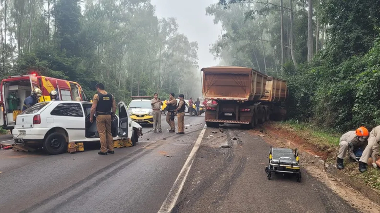 Motorista dorme no volante e bate de frente com carreta na BR-376
