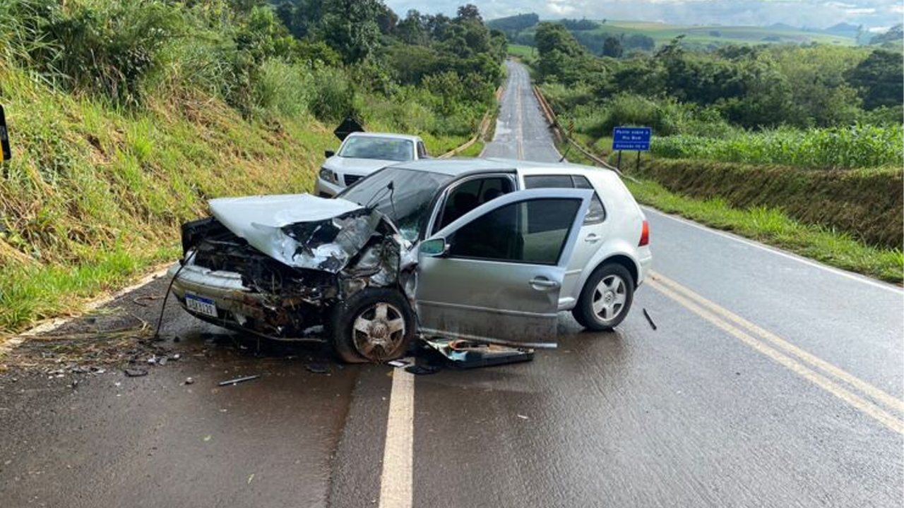 Motorista fica ferida após bater contra pedra na PR-466