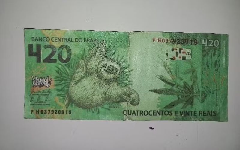Polícia Militar apreende nota falsa de R$ 420 com bicho-preguiça estampado na cédula em Curitiba