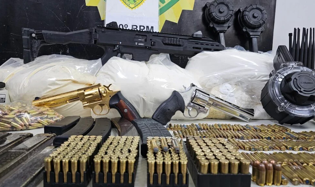 Polícia Militar apreende diversas armas, munições, carregadores e 30 quilos de cocaína em “fábrica de sorvete” em Curitiba