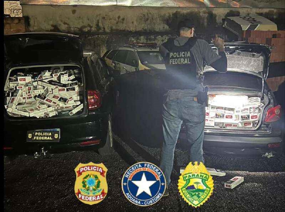 Ação da PF, Receita Federal e PM apreende dois carros veículos carregados com cigarro ilegais