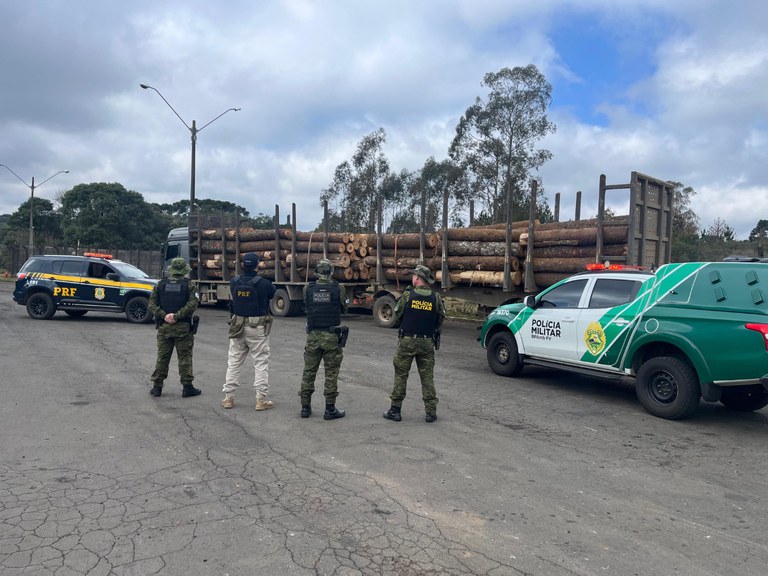 Carga irregular de madeira nativa é apreendida na BR-277, em Guarapuava