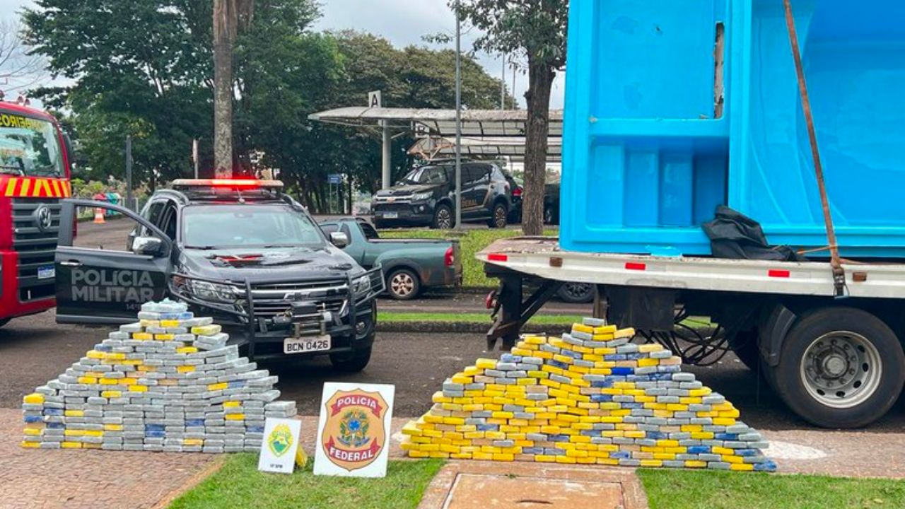 PF e PM apreendem 470 quilos de cocaína em fundo falso de piscinas de fibra no Paraná