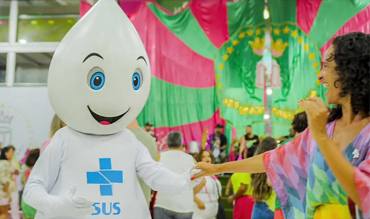 Zé Gotinha grava clipe de samba-enredo na quadra da Mangueira