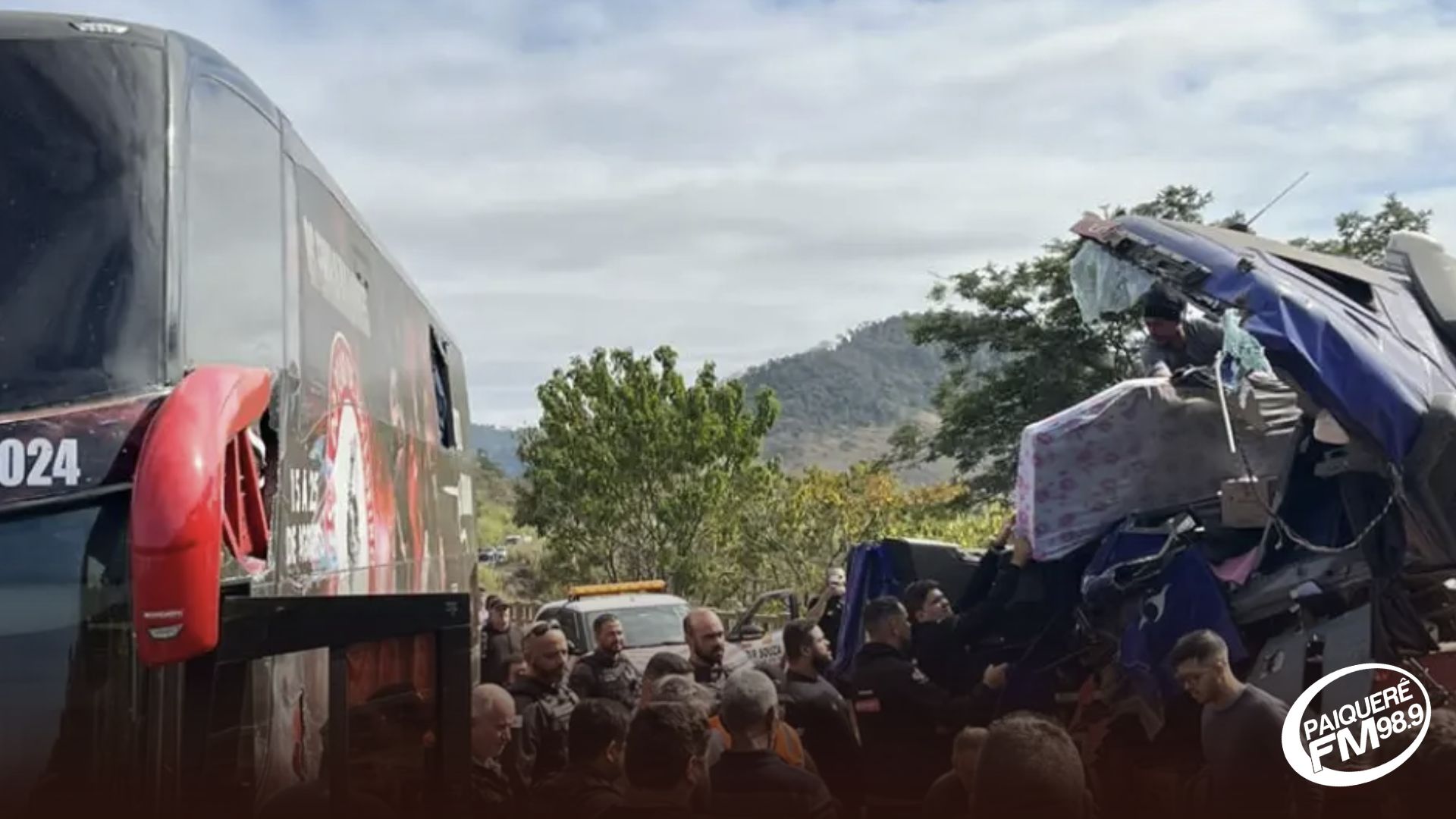 Ônibus da dupla César Menotti & Fabiano se envolve em acidente com carreta na BR-262 na Zona da Mata