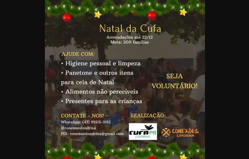 Conexões Londrina promove Natal da CUFA para atender 200 famílias