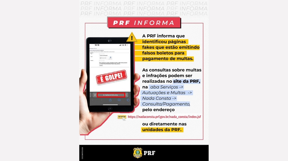 Atenção: Golpistas usam nomes de órgãos públicos para enganar vítimas com falsas multas e benefícios