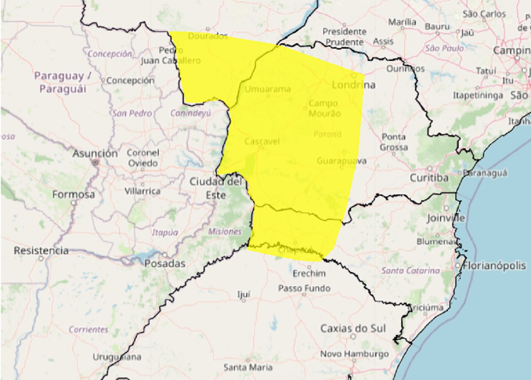 Inmet emite alertas para chuvas intensas em todo o Paraná