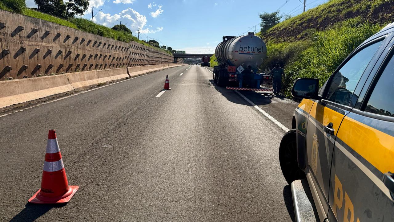 Incêndio em caminhão interdita Contorno Norte em Maringá