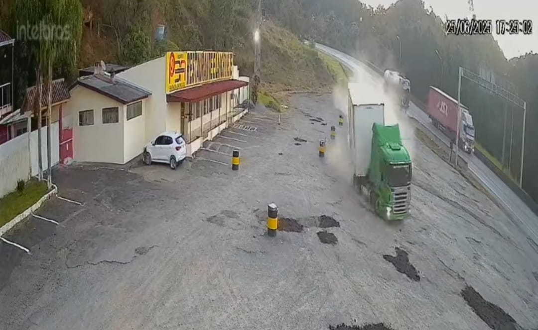 Caminhão tomba ao ficar sem freio na BR-116 em Campina Grande do Sul