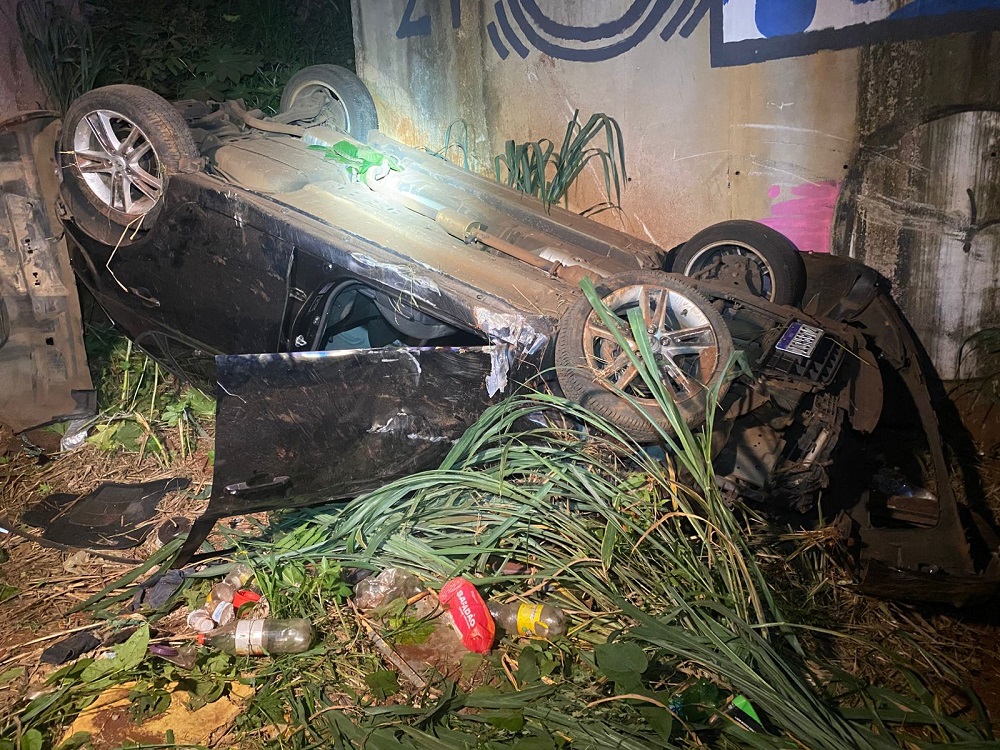 Carro bate em viaduto e capota na BR-376 próximo à Apucarana