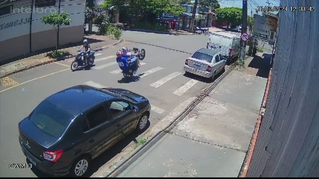 Acidente em Rolândia envolve motociclista empinando moto e carro em cruzamento