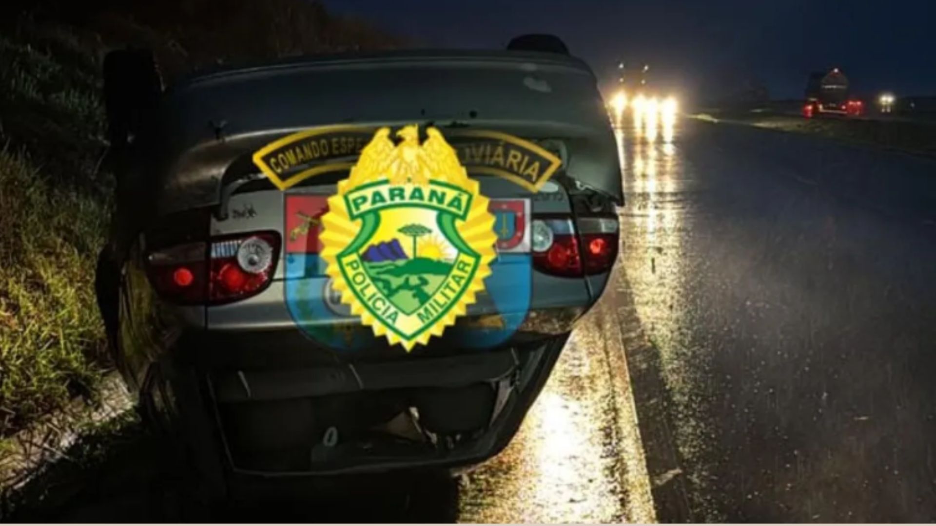 Mulher de 52 anos capota veículo na BR-376 em Cambira