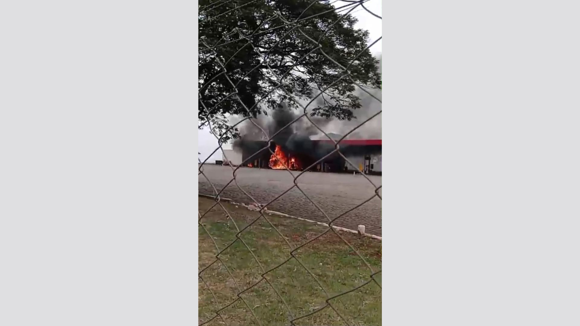 Vídeo: Carreta pega fogo em posto de combustível na PR-323