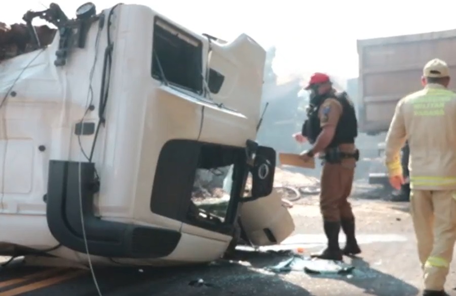 Motorista morre carbonizado após colisão frontal entre dois caminhões na PR 180