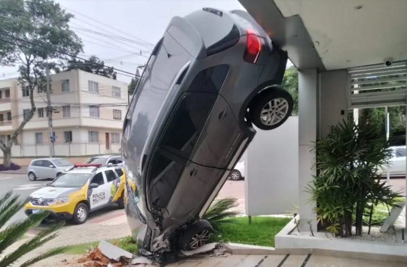 Capotamento ‘de cinema’ quase mata dois pedestres na calçada!