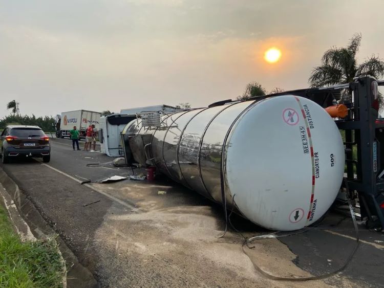Carreta com sebo bovino tomba na rodovia BR-369 em Londrina