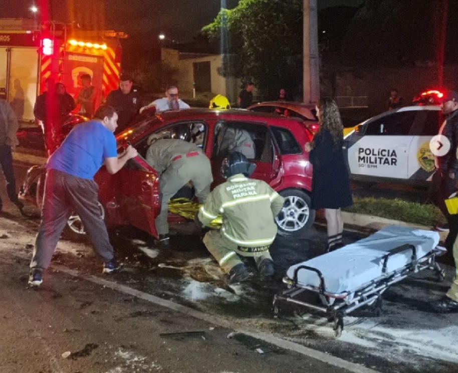 Lona de freio de caminhão atinge carro na PR 092 e motorista fica gravemente ferido