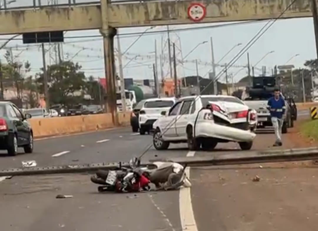 Motociclista fica gravemente ferido após colisão com carro na Avenida Laranjeiras