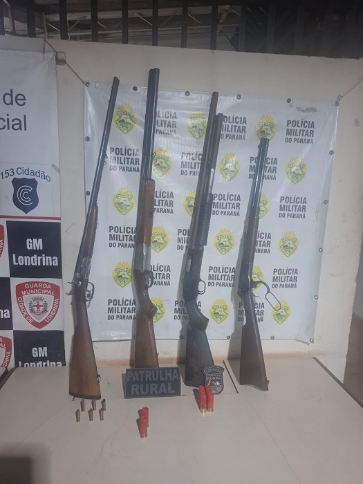 A ação continuou na tentativa de localizar os homens, e mais duas armas foram identificadas dentro da área de mata: uma espingarda calibre 12, modelo Boito Pump, e uma espingarda calibre 36. As equipes realizaram varreduras na região, porém os suspeitos não foram localizados. O caso foi registrado como apreensão de arma de fogo de uso restrito, e o material recolhido foi encaminhado para os procedimentos legais.