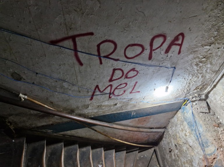 A Polícia Civil do Rio de Janeiro encontrou, neste domingo (30), um “bunker” usado como ponto de venda de drogas em um casarão abandonado na Lapa, Região Central da capital (veja imagens abaixo). O imóvel, segundo as investigações, pertence a Wilton Carlos Rabello Quintanilha, conhecido como “Abelha”, um dos chefes do Comando Vermelho. Dois homens foram presos em flagrante. O local funcionava como centro de venda de entorpecentes como maconha, haxixe, skank, cocaína e crack. Mais de 2 mil porções foram apreendidas, causando um prejuízo estimado de R$ 100 mil ao tráfico. O “bunker” era um cômodo fortificado com portas de aço e passagens para fuga, dificultando a entrada da polícia.