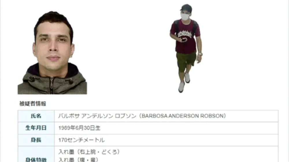 Anderson Robson Barbosa era procurado pela polícia do Japão suspeito de ter assassinado a esposa e a filha em agosto de 2022 | Foto: Reprodução