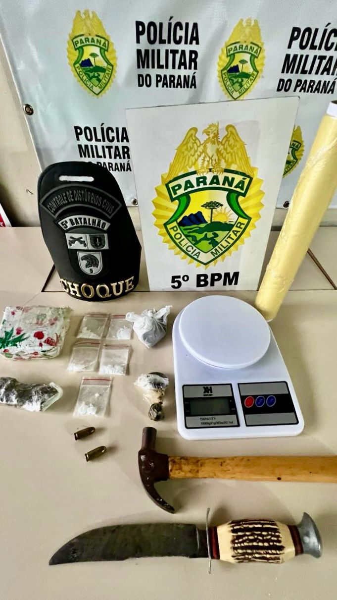 A Polícia Militar prendeu um homem, de 31 anos, e diversos entorpecentes na rua André di Pietro, em Cambé, na Região Metropolitana de Londrina, no final da tarde de terça-feira (06).