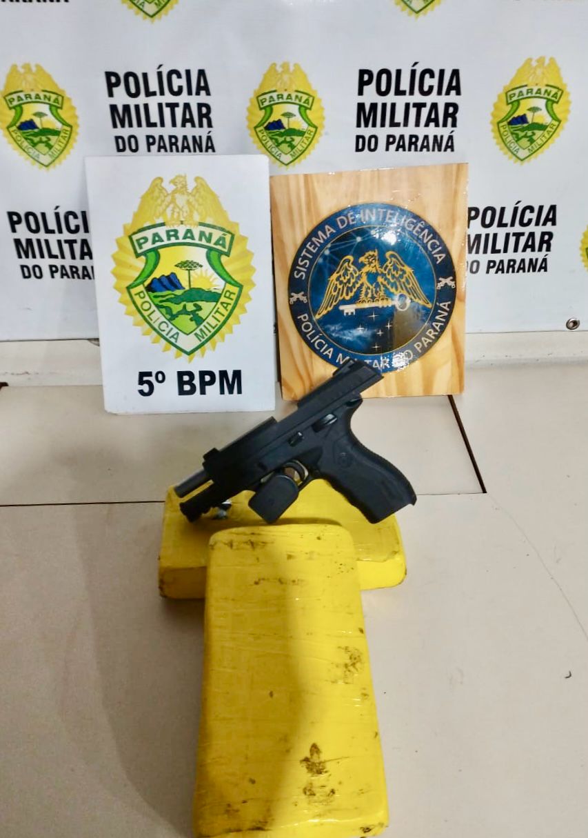 A Polícia Militar prendeu um jovem, de 22 anos, e apreendeu 2.090 quilos de cocaína; uma pistola Taurus calibre 380 e um carregador de pistola na avenida Maratona, na zona oeste de Londrina, no final da tarde de terça-feira (06).
