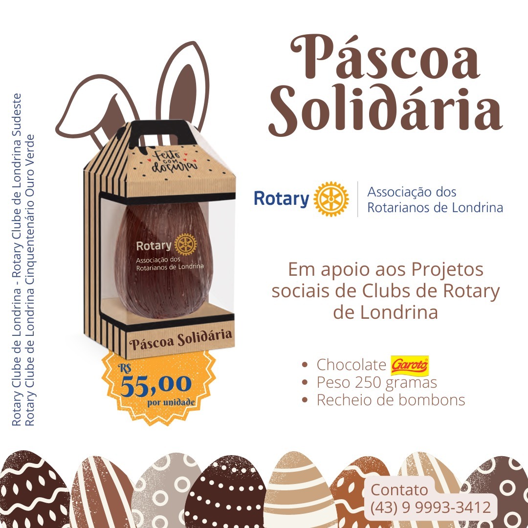 A Associação dos Rotarianos de Londrina, lançou a campanha Páscoa Solidária, com o objetivo de arrecadar recursos para o a manutenção dos diversos projetos sociais promovidos pelo Rotary em nossa cidade.
