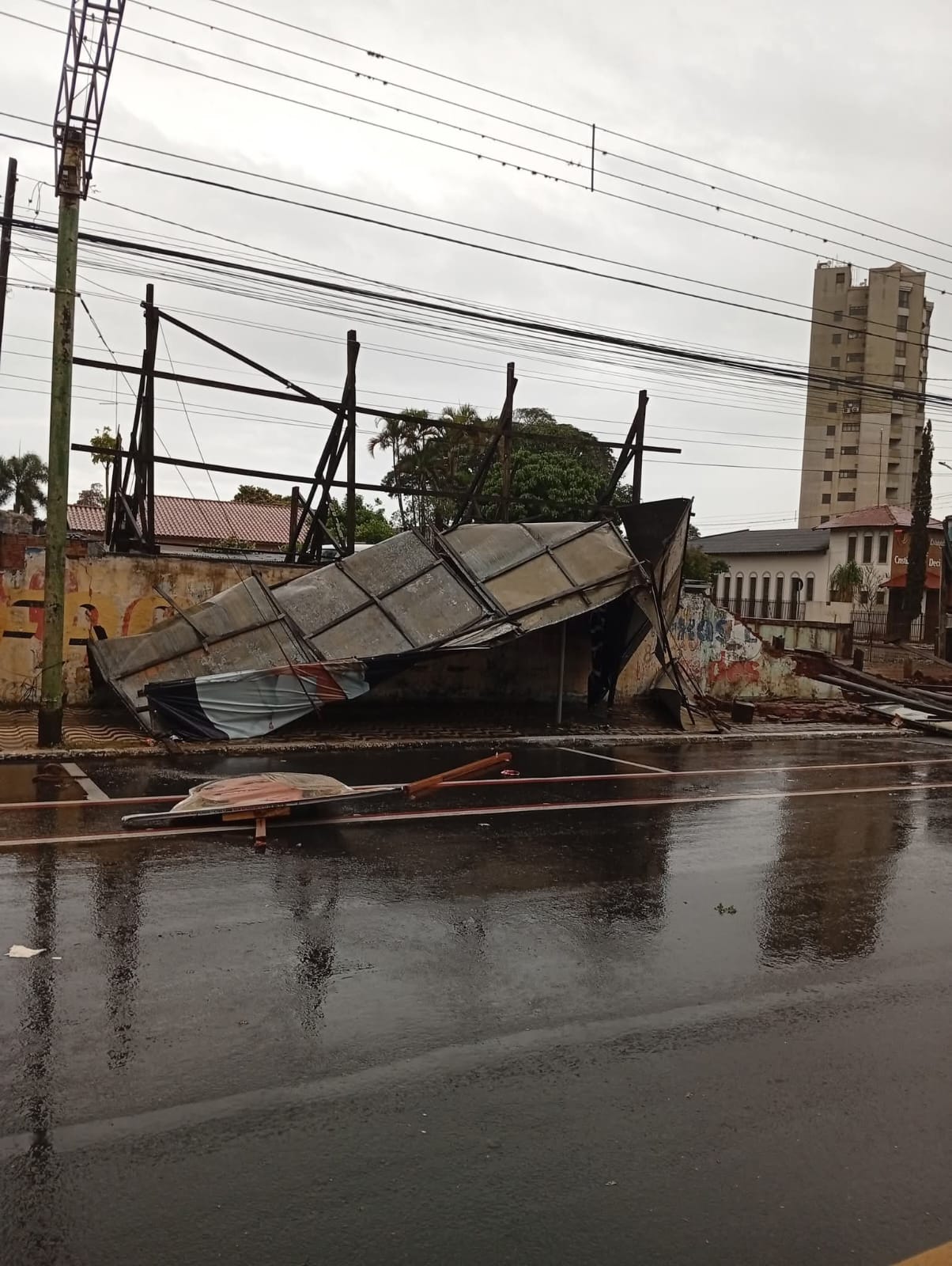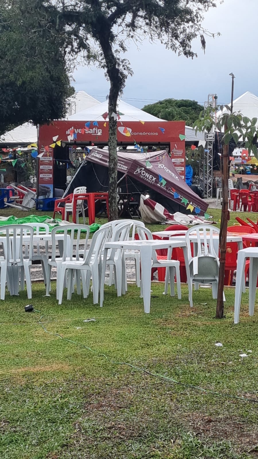 Ventos de até 90 km/h derrubaram árvores, destelharam imóveis e danificaram estruturas da Festa Junina da Igreja Matriz São José