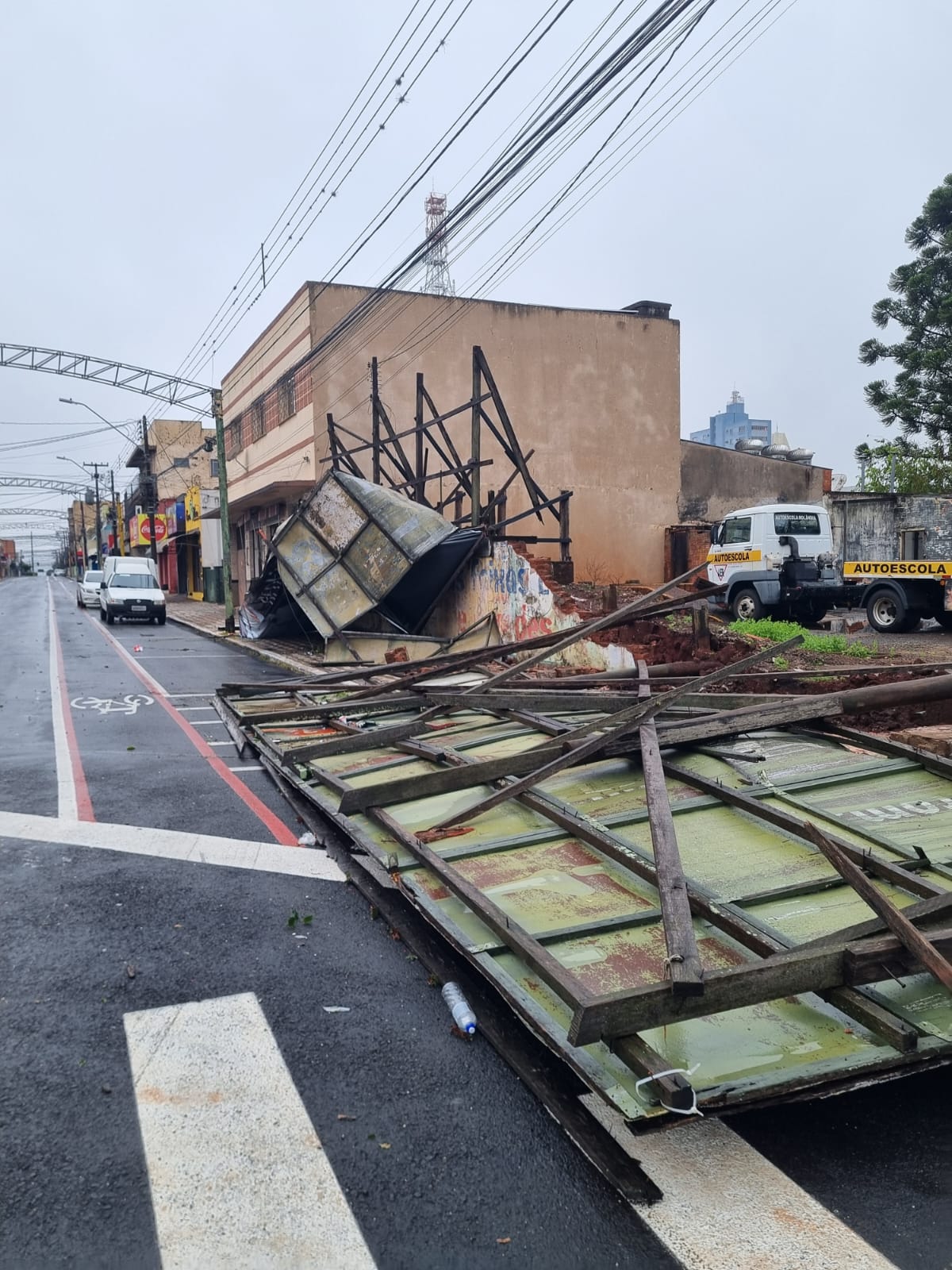 A Defesa Civil Municipal de Rolândia informou que a tempestade que atingiu a cidade na madrugada deste domingo (15) provocou diversos estragos em várias regiões. Equipes das secretarias de Infraestrutura, Serviços Públicos e Agricultura e Meio Ambiente estão mobilizadas desde as primeiras horas do dia para atender as ocorrências e realizar os reparos necessários. De acordo com o coordenador da Defesa Civil, Miguel Consani Nogueira, os ventos chegaram a mais de 60 km/h, podendo ter alcançado 90 km/h em alguns pontos. A força da tempestade derrubou árvores, muros, outdoors e destelhou casas, além de causar danos parciais à Biblioteca Central e destruir parte das tendas e barracas da Festa Junina da Igreja Matriz São José.