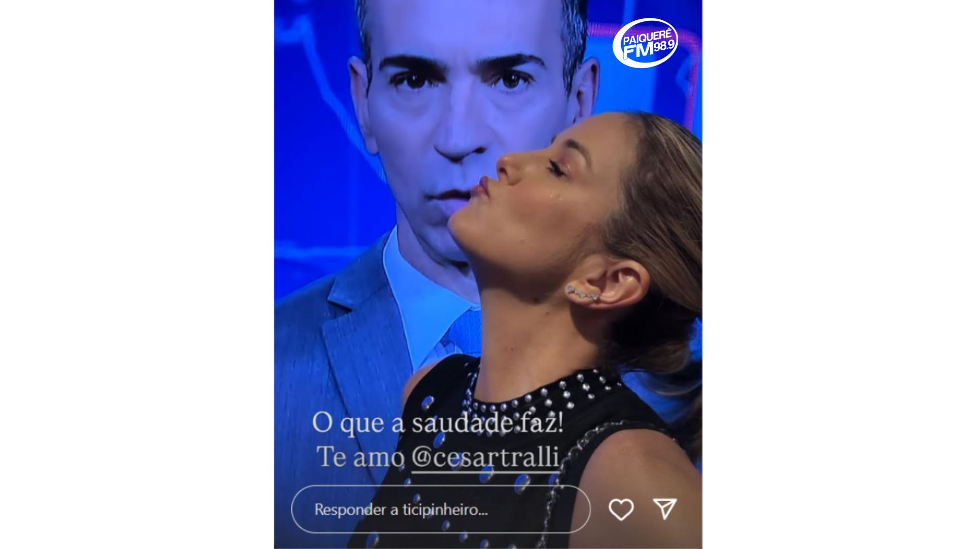 Na noite da última quinta-feira (29/5), Ticiane Pinheiro fez os seguidores caírem na risada ao publicar uma foto divertida durante a apresentação do “Jornal Nacional”, comandado por seu marido, César Tralli. Na imagem, ela aparece em casa, estrategicamente posicionada para parecer que estava beijando o jornalista que surgia na televisão. “O que a saudade faz”, escreveu ela na legenda da publicação. Casados desde 2017, Ticiane e Tralli costumam compartilhar momentos de carinho e vida familiar nas redes sociais. Recentemente, a apresentadora falou sobre a relação do casal e destacou a confiança mútua: “Graças a Deus, não temos espaço para o ciúmes, confiamos muito um no outro.”