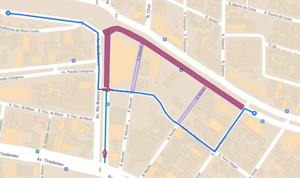 Previstas para serem efetivadas ainda na parte da manhã, as modificações incluem inversão de sentido em uma quadra da rua João Pessoa, entre a rua Porto Alegre e a avenida Leste-Oeste. O trecho, que atualmente funciona em direção à rua Quintino Bocaiúva, receberá o fluxo no rumo oposto, com destino à região das obras.