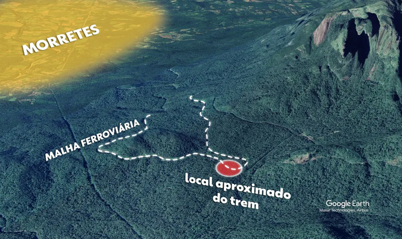 Veículo tem 22 vagões. Bombeiros confirmaram que árvores caíram nos trilhos por onde a locomotiva passa